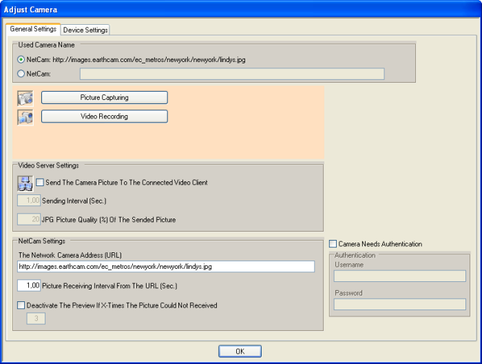 Camera Needs Authentication - select if the camera webserver needs an authentication