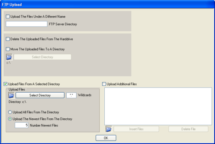 Upload Additional Files - if selected, additional selectable files are uploaded